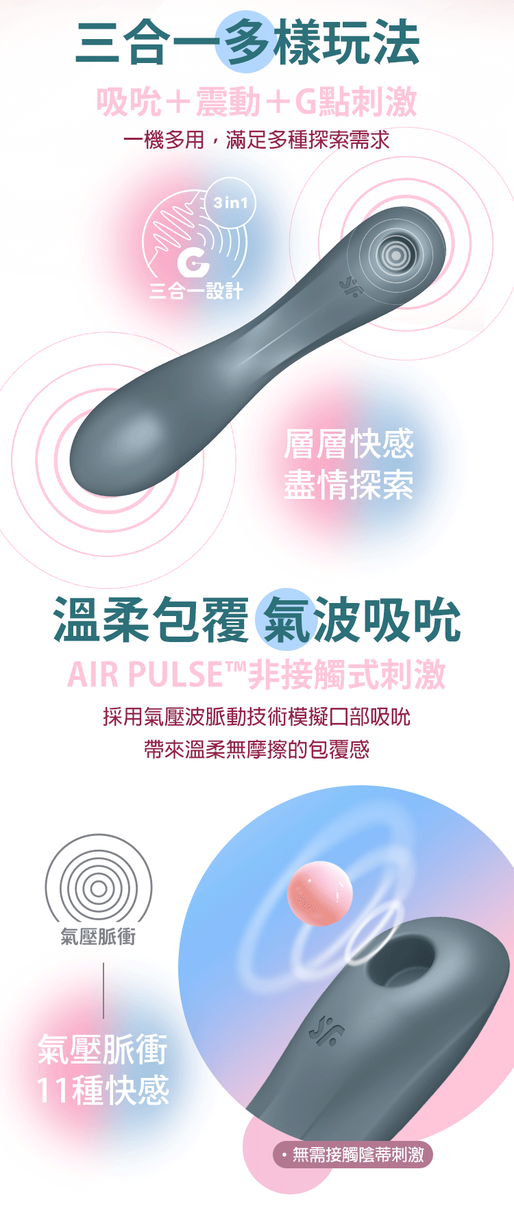品名:Satisfyer|Curvy Trinity 1|曲線吸吮按摩棒 藍灰
