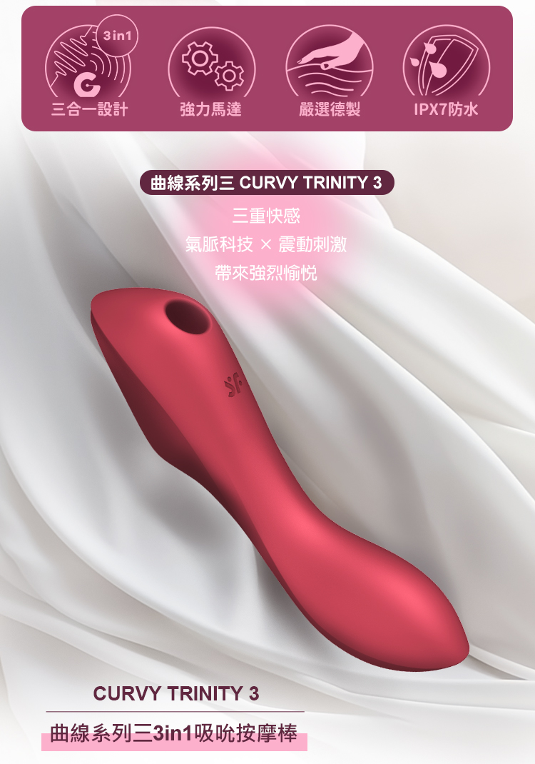 品名:Satisfyer|Curvy Trinity 3|曲線吸吮按摩棒 紅