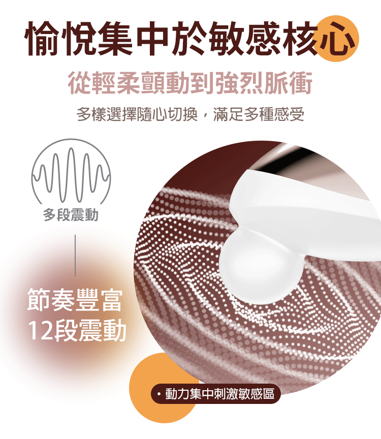 12 種震動模式|多段節奏自由切換,從輕快律動到強勁爆發,滿足不同需求。