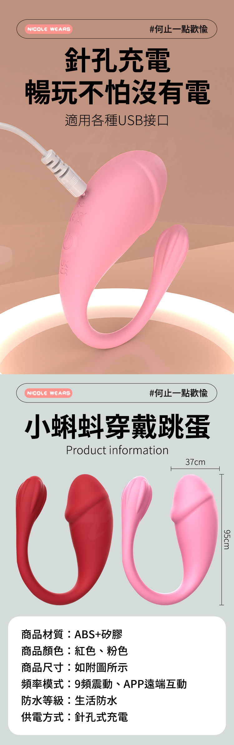 商品名稱:小蝌蚪智能遙控穿戴跳蛋|情侶互動震動器