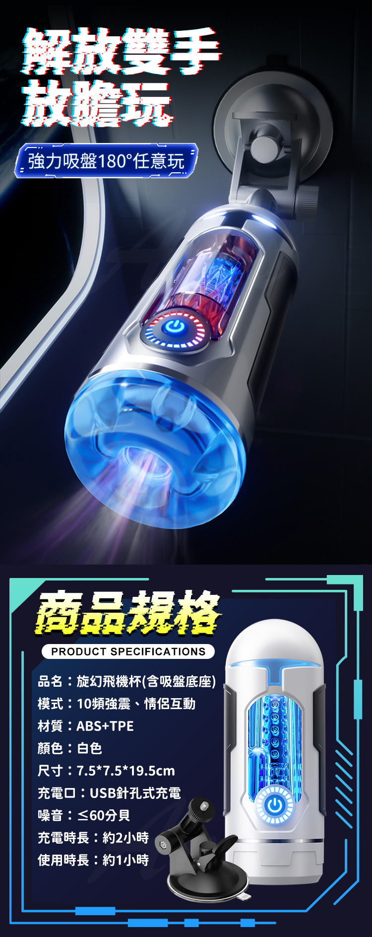 產品名稱:Roselex|狂暴動力|旋幻飛機杯(吸盤款)